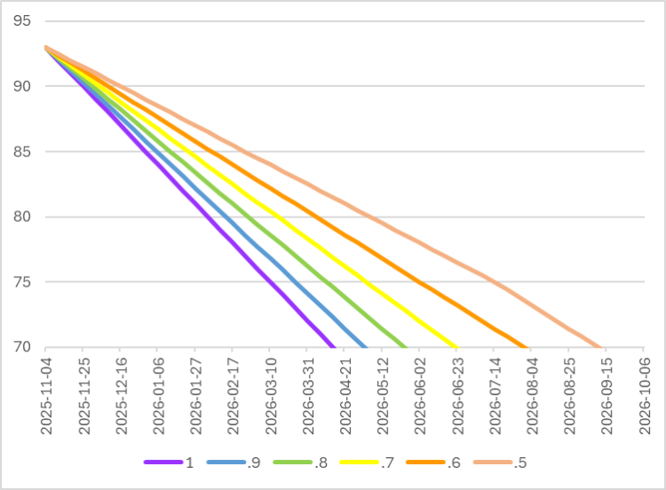 Vilken härlig bild! Den visar verkligen hur den där "långsamma" viktnedgången inte är så farlig som vi vill tro :-) Jag har gjort ngt liknande, har bett min goda vän AI att skapa mig ett dokument där jag fyller i min faktiska vikt varje vecka och så räknar den ut %, hur långt jag har kvar till mitt mål, hur jag ligger i förhållande till om jag går ner 1,5 kg eller 1 kg/vecka, jag fyller i mina steg, kcal osv. Men du får mig att fundera på om jag också ska kolla på lägre siffror, om jag går ner mindre än 1 kg, hur ser det ut då.